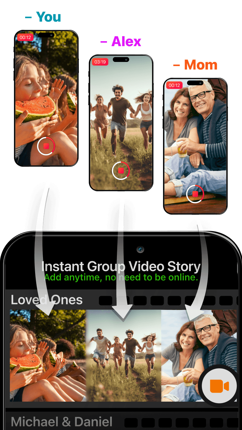 One tap is all it takes! At any time, everyone in your close circle can capture and automatically add their daily moments—from kids’ first steps to summer adventures—into one seamless family video.