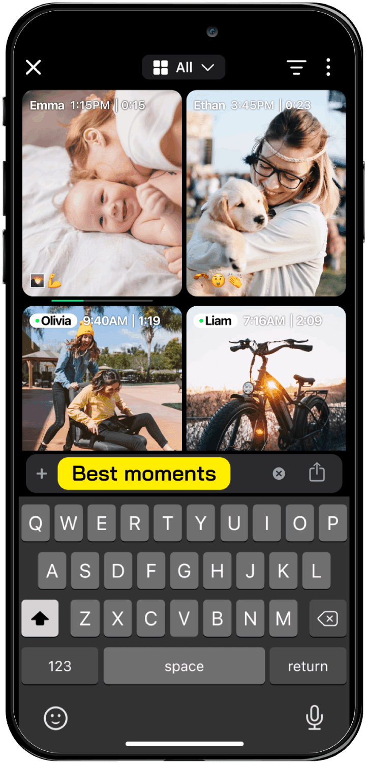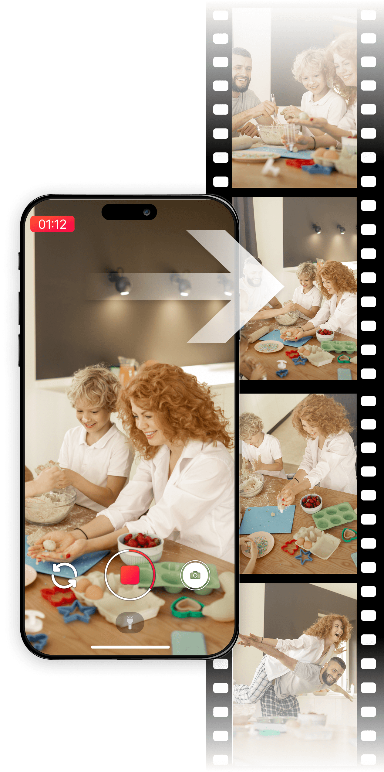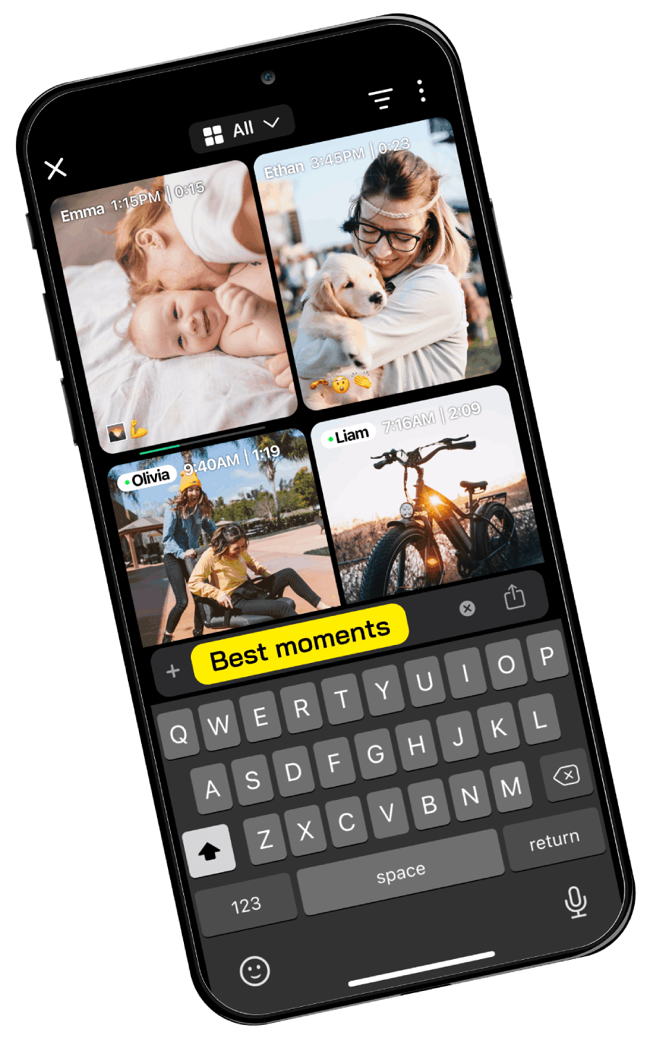 When filming together, you appear in their clips—finally seeing yourself in the moment. Relive your gatherings from the most exciting angles!