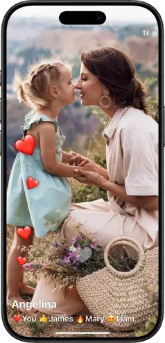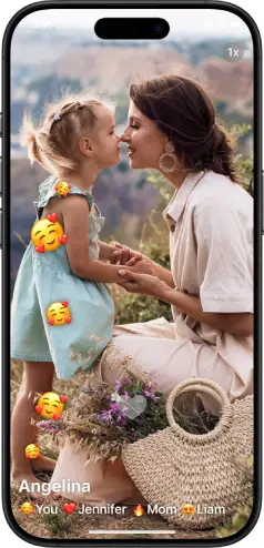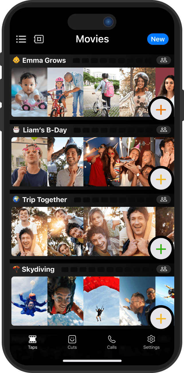 See the people you love with their voices, faces and emotions in one evolving movie. Watch it as they film or whenever you like.
